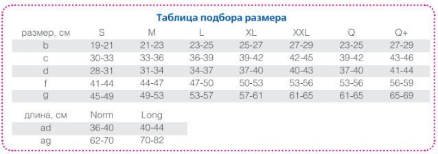 Таблица размеров